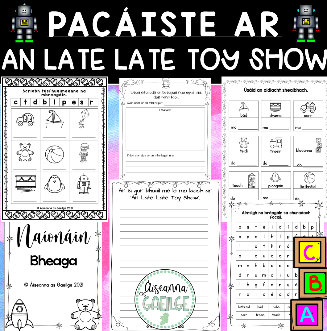 Pacáiste le bileoga oibre lán le gníomhaíochtaí ó ranganna na naíonáin suas go Rang a 6. Tá 47 lth san iomlán sa phacáiste.